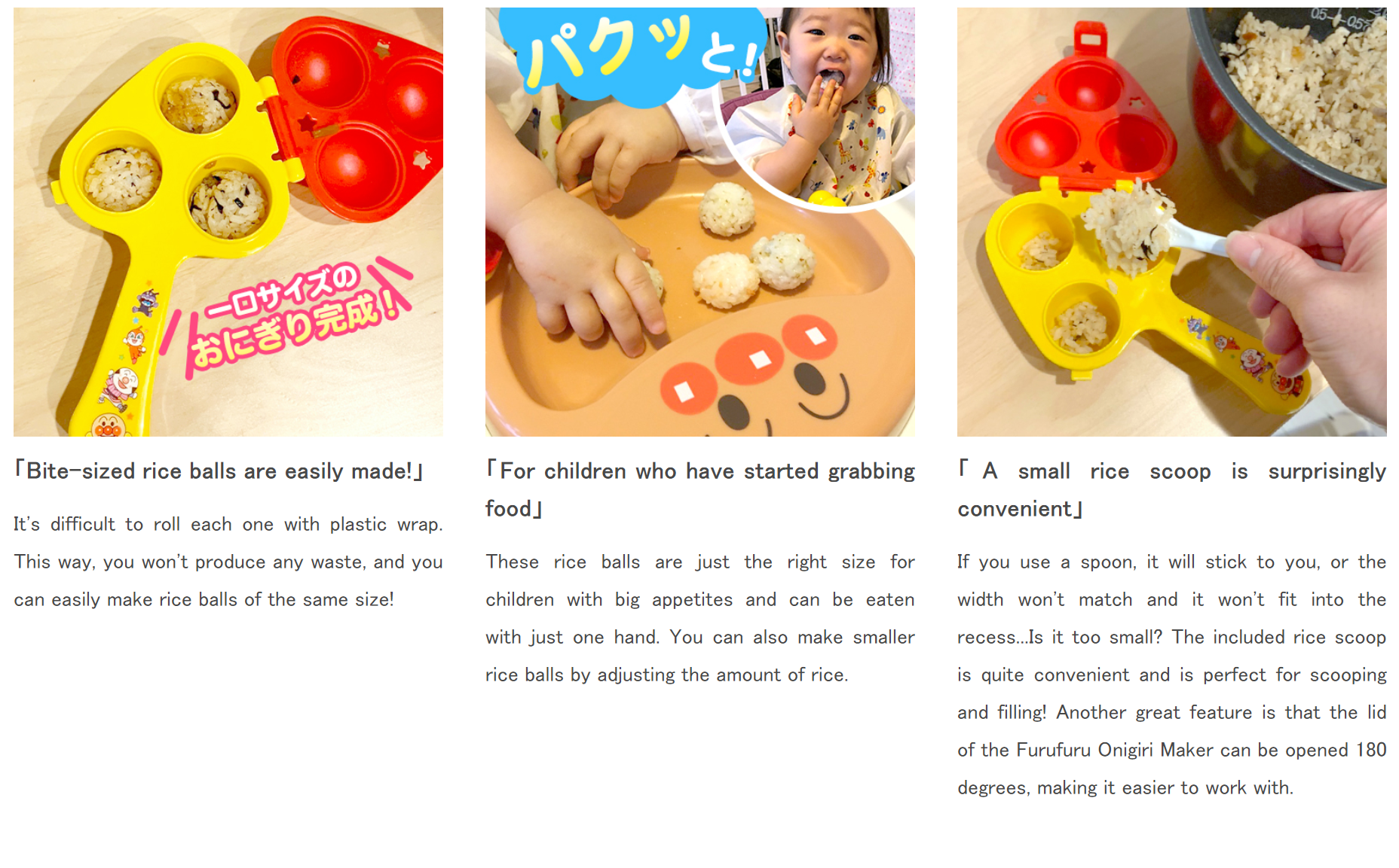 - Bite-sized rice balls are easily made!