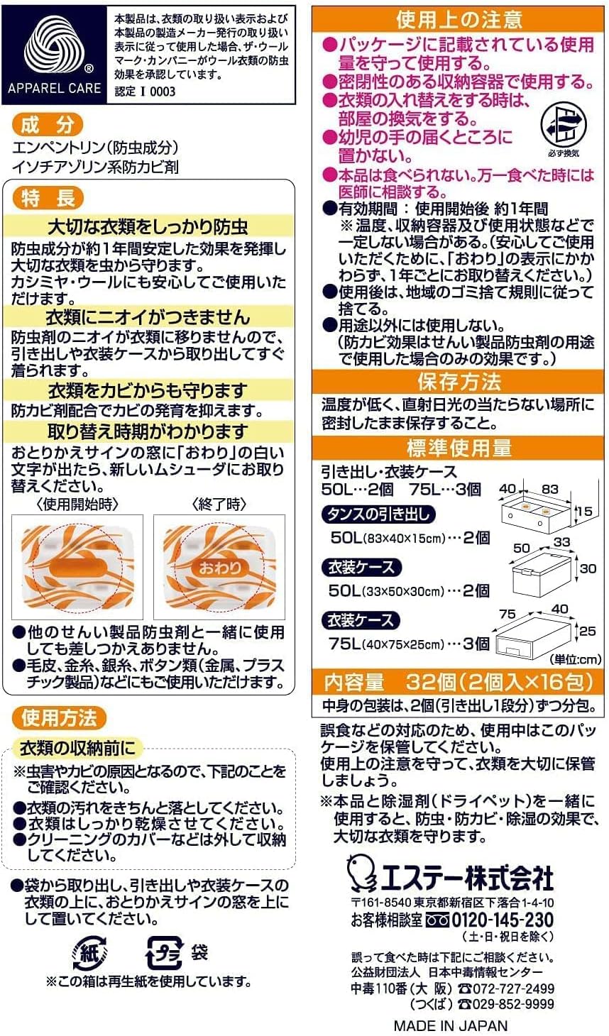 无味无毒,可有效抵抗虫蛾长达一年
